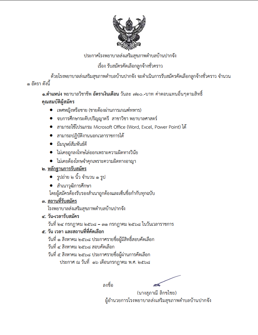 รับสมัคร คัดเลือกลูกจ้างชั่วคราว